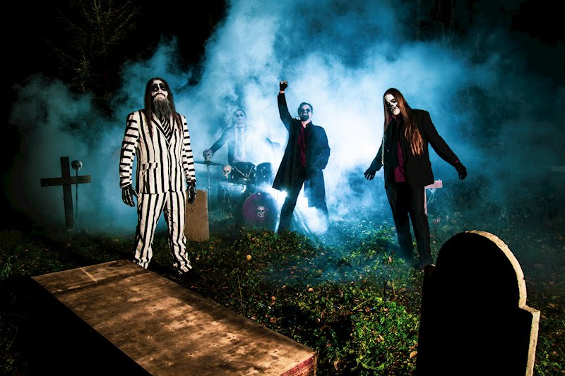 The Ghoulstars collect experienced musicians into a supergroup. That includes axeman Laakso and drummer Toni “Ghoulio” Ronkainen who were in the Finnish Death-Doom band Kuolemanlaakso. Bassist Markus “Hella Ghoul” Makkonen formerly played for Season of Mist labelmates Hooded Menace while Arthur “LL Ghoul A” Thure also sings for Stoner Rock band Thermate.